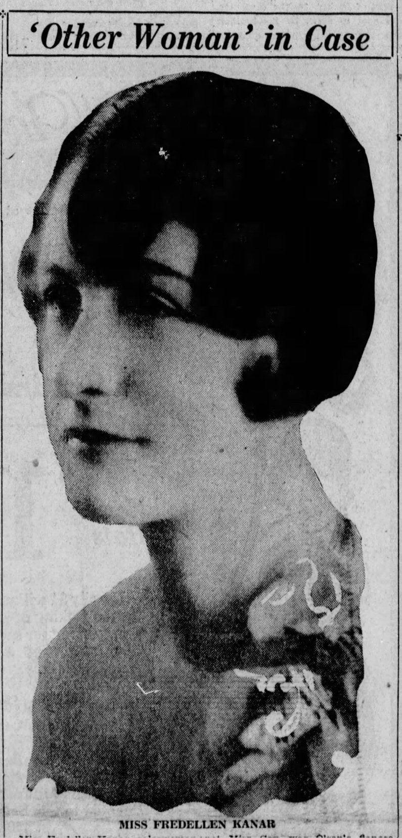 Ok, having read this far, you're waiting for the juicy bit! It seems that Elmer Olson had a few lady friends in the mid-1920s. One was a violinist named Valerie Cox. Possibly a little later, Olson also came to be intimate with a divorcee (as they said in those days) named Fredellen Kanar, who was a beautician. Let us see what these ladies looked like: