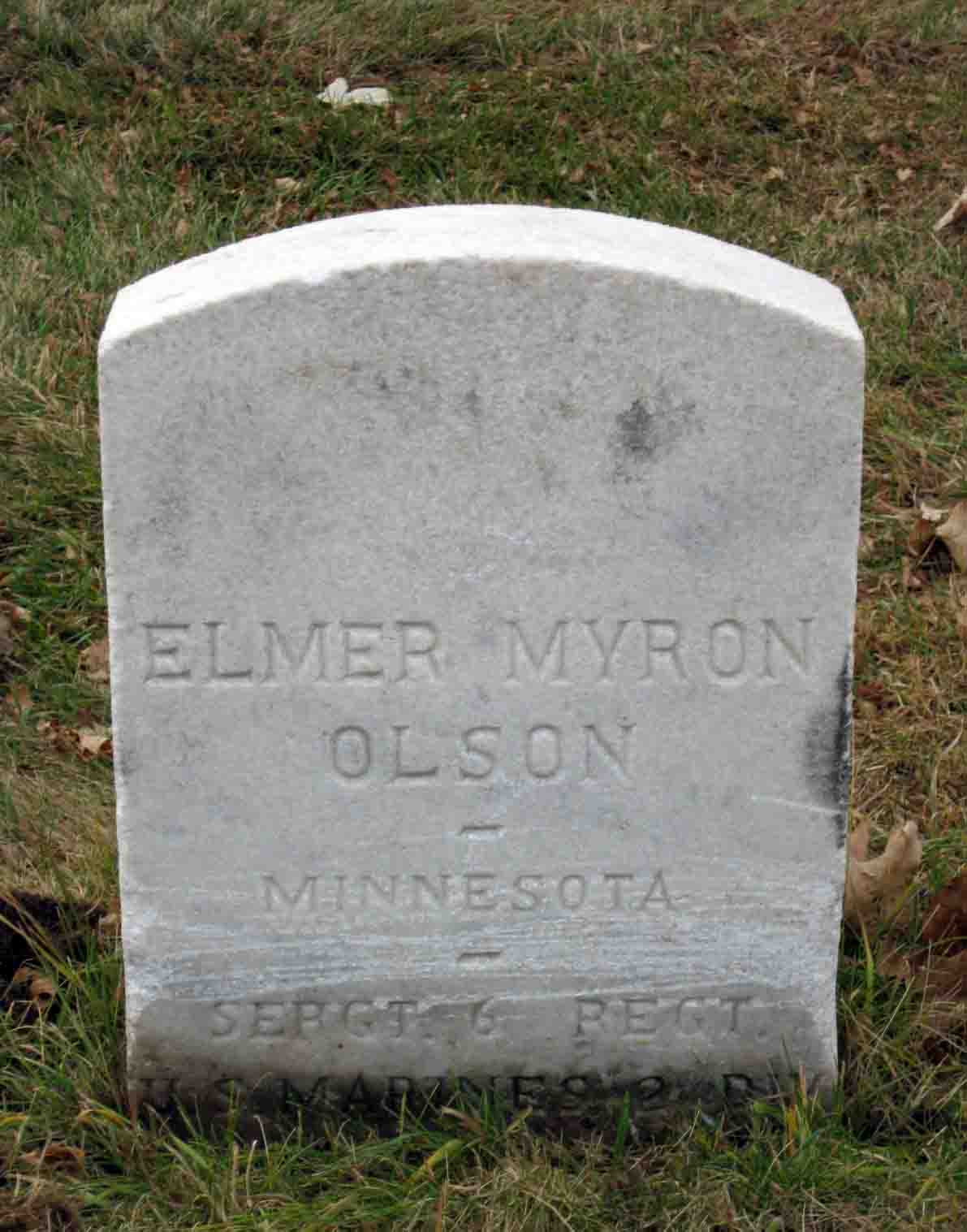 Here is his grave marker, in Crystal Lake Cemetery, Minneapolis, MN. I have added a photo to the memorial and suggested adding his birthdate and some biographical material to Find A Grave. The URL is https://www.findagrave.com/.../100738219/elmer-myron-olson