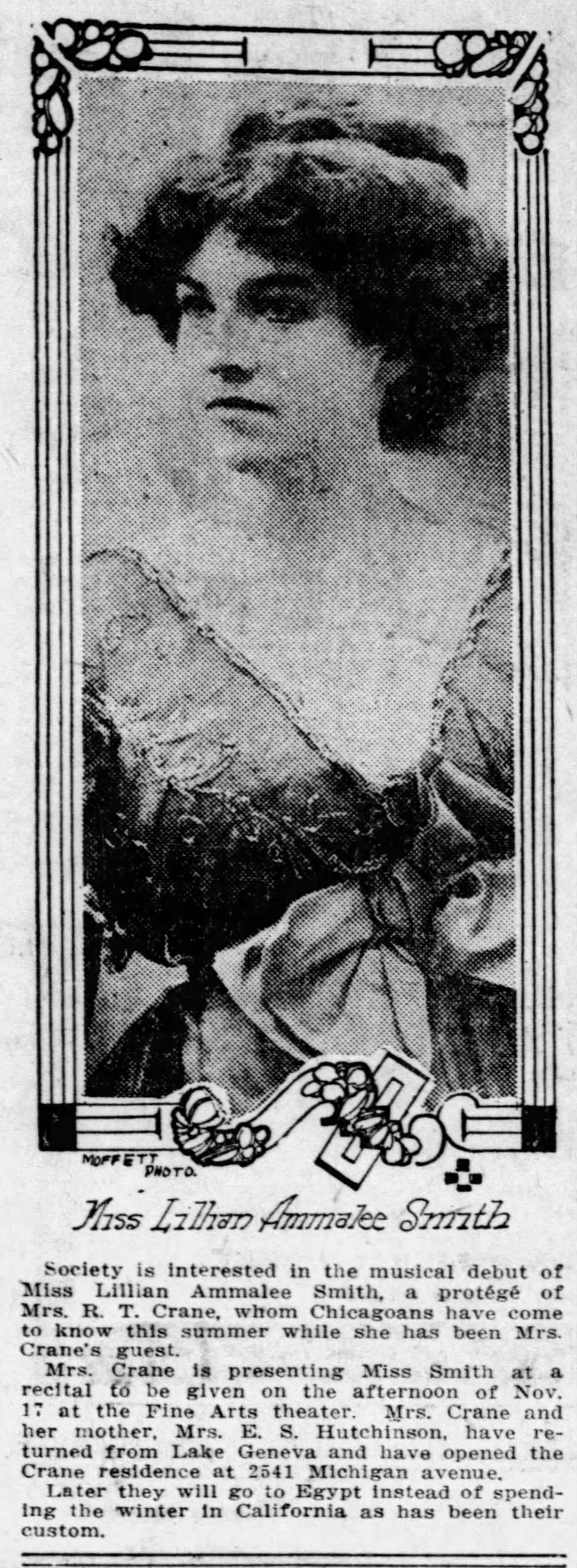 And here's a photo of Lillian Ammalee (Smith) from when she was young. Evidently she was from California, probably Los Angeles. This is from the Chicago Tribune 5 Nov 1912, page 9.