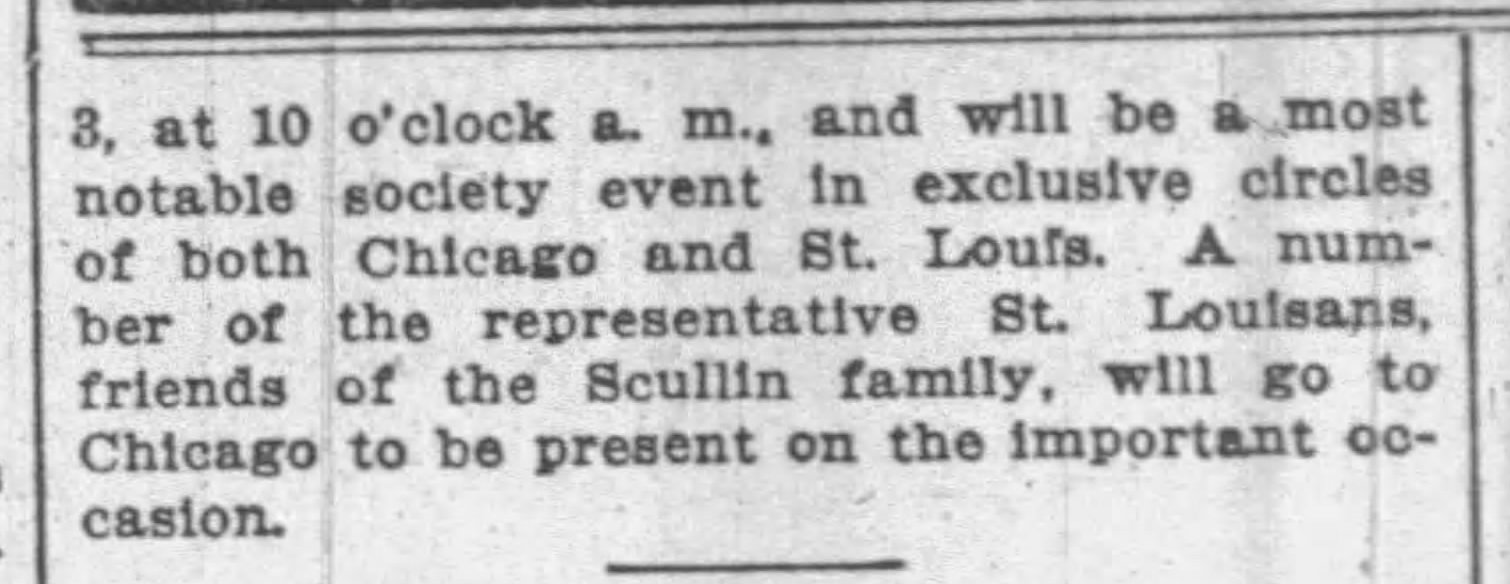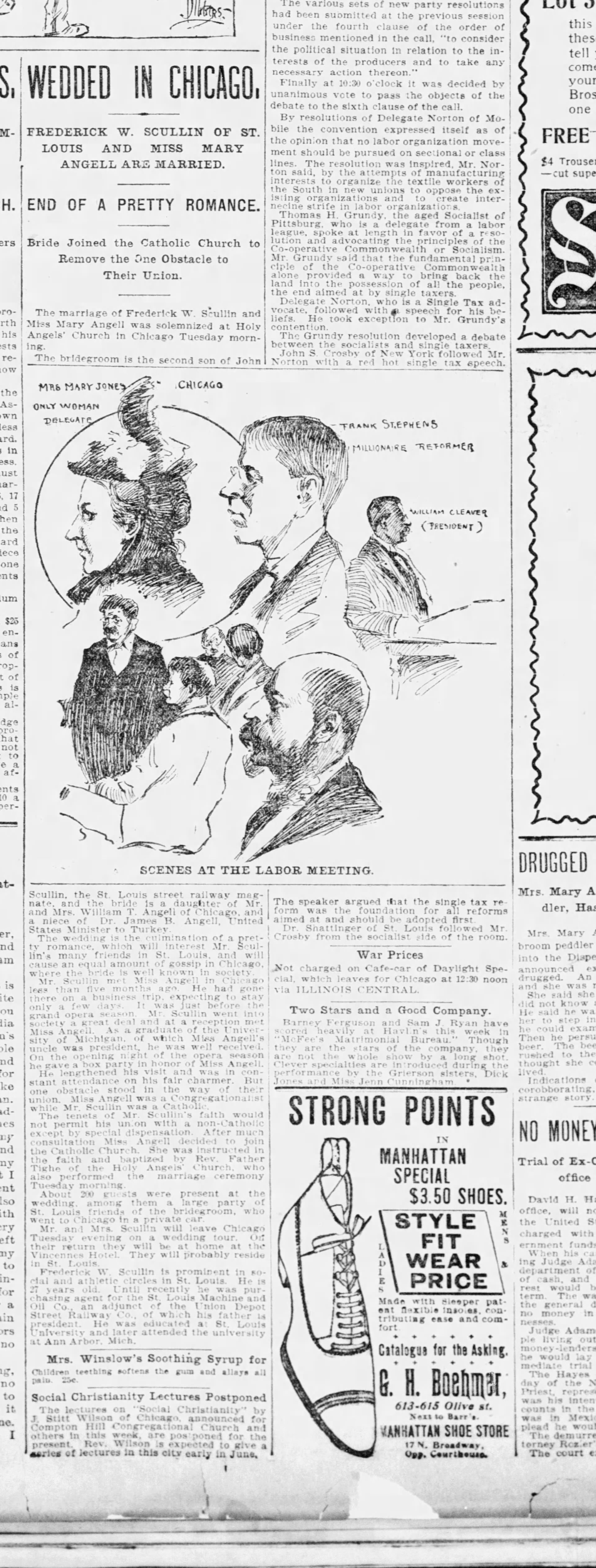Mary Angell marries Frederick William Scullin May 1898 (St. Louis Post-Dispatch (St. Louis, Missouri) · 3 May 1898, Tue · Page 7).