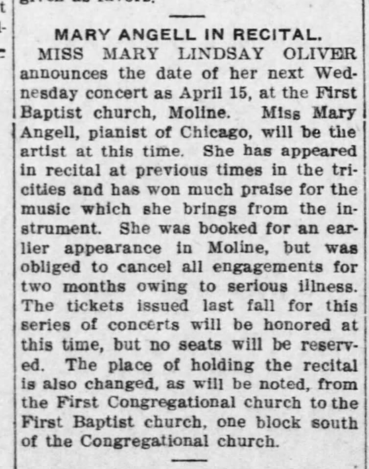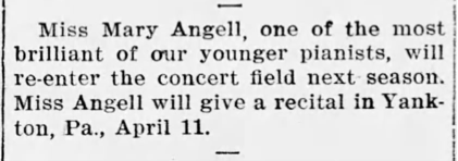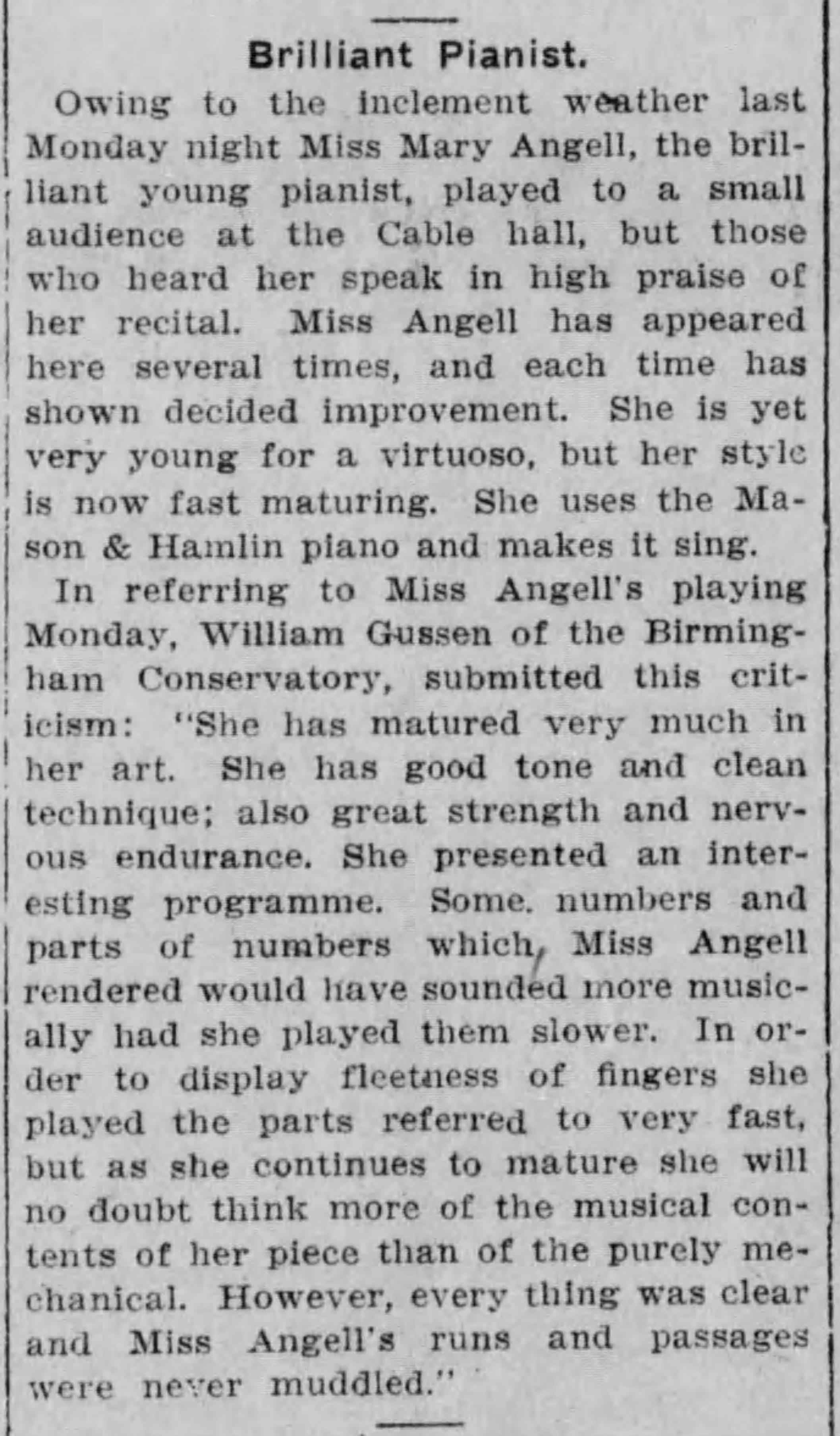 Angell appeared in recitals as far flung as Minneapolis and Birmingham Alabama at this time. (The_Birmingham_Age_Herald_Sun__Feb_11__1906)